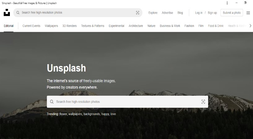 Unsplash kao što i sama naslovna govori je online alat-platforma koja vam nudi predivne fotografije za vaše projekte. Imate li svoj blog možete koristiti fotografije po svom odabiru besplatno. Odlične pozadinske slike za logo koje će upotpuniti i pojačati promotivni dojam, također možete ovdje odabrati.