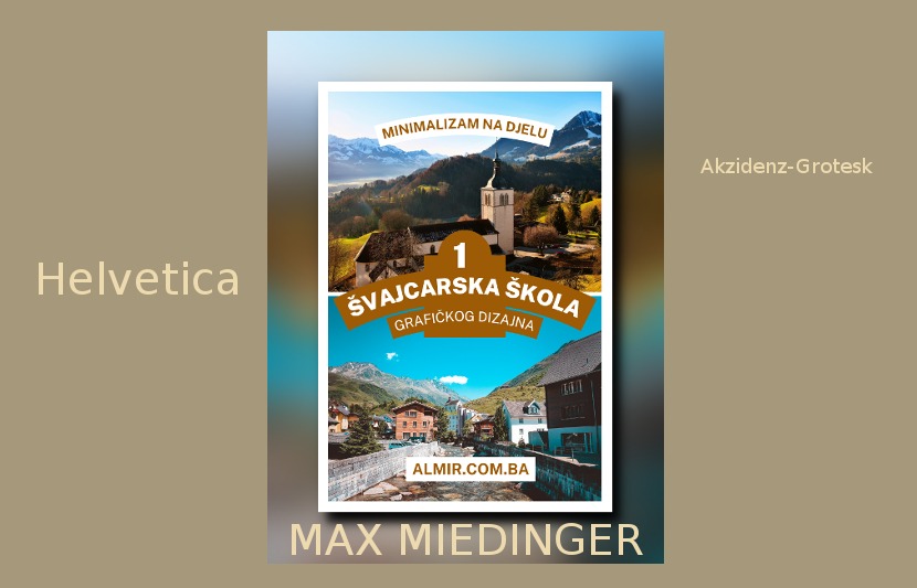 Švajcarska škola grafičkog dizajna kroz suptilan dodir preciznosti, jednostavnosti i elegancije zasigurno predstavlja jedan od najutjecajnih pravaca u svijetu grafičkog dizajna. Obično kad se spomene Švajcarska škola grafičkog dizajna veže se za Maxa Miedingera i jedan sjajan font.